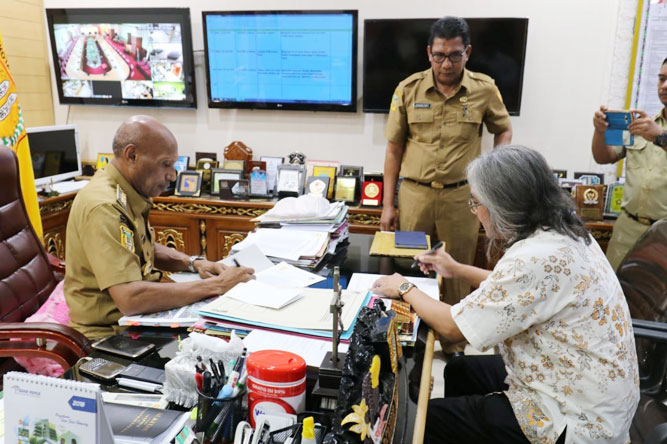 Yang dilakukan di ruang kerja Walikota Jayapura, Senin ( 25/6/ 2018 ).