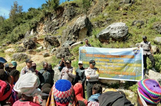 Paniai, Nokenlive.com – Dalam rangka menjalin tali silaturahmi antara polisi dan masyarakat di Distrik Enarotali, Kabupaten Paniai, Papua Polres Paniai mengelar acara kunjungan kasih ke kampong Awabutu, Selasa (10/07/2018).
