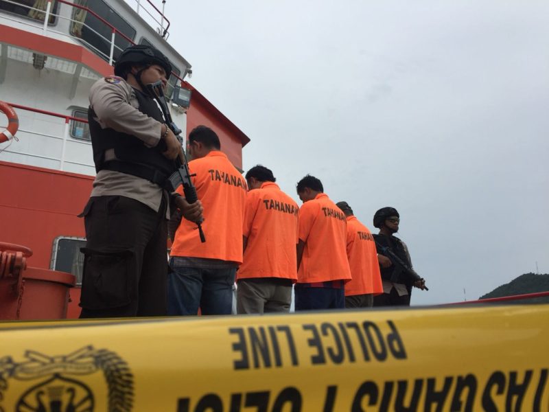 Empat orang pelaku diamankan diatas Kapal Tanker Karganegara yakni LOK (41) Nakhoda SPOB Kertanegara dan AR (28), Nakhoda KM Khairos II, M (26) Mualim I SPOB Kertanegara dan K (40) KKM SPOB Kertanegara.