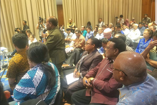 Jayapura, Nokenlive.com – Ketua MRP dan pimpinan pokja bersama staf ahli MRP, turut menghadiri undangan kegiatan bedah masalah dan menggali solusi, pasca liputan investigasi Tempo “Mesin Cuci Kayu Ilegal Papua”. Kegiatan yang digelar di Hotel Morrisey, Jakarta 28 Januari 2019, dimulai dari pukul. 09.00 pagi hingga pukul 12.30 siang WIB ini dianggap sangat penting, karena berkaitan dengan tema MRP untuk lima tahun ke depan, yakni Penyelamatan Manusia dan Tanah (hutan) Papua.
