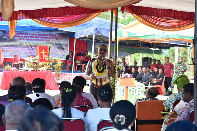 Hal ini disampaikan Kapolda Papua saat menghadiri ibadah syukur HUT II bakal klasis GKI Muara Tami dan peletakan batu pertama pembangunan kantor bakal klasis GKI Muara Tami, di Kelurahan Koya Timur Distrik Muara Tami, Sabtu (16/3/2019).