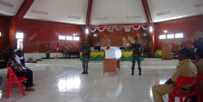 Dari bandara Karubaga jenazah almarhum diantar ke Aula Sidang DPRD Tolikara di Karubaga untuk dilakukan prosesi pelepasan secara kenegaraan. Pelepasan jenazah dipimpin langsung Sekda Tolikara Anton Warkawani, SE.
