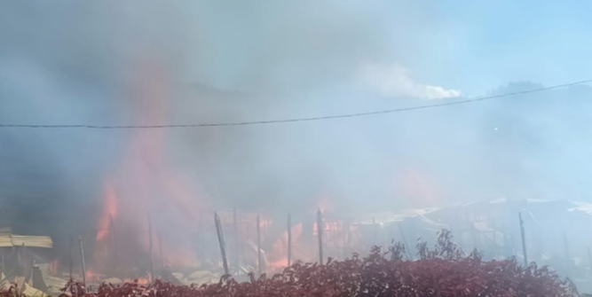 Karubaga, Nokenlive.com – Masyarakat kota Karubaga ibu kota Tolikara kembali dilanda musibah kebakaran tepatnya di RuKi Rumah Kios pinggir lapangan terbang pesawat dekat kediaman Bupati Tolikara. Lebih dari 61 Rumah Kios Ruki dan 3 rumah warga hangus terbakar rata tanah jumat, 09 agustus 2019 pada pukul. 11 siang di Karubaga.