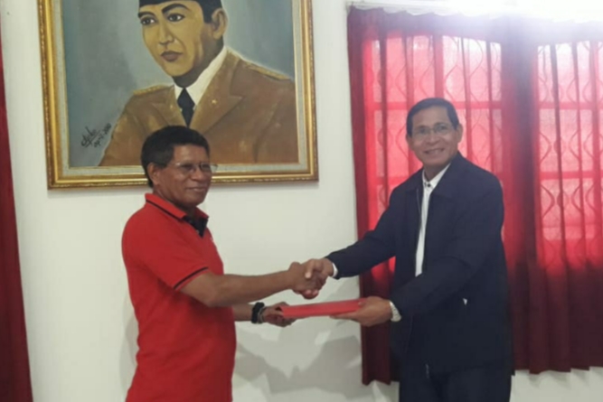 Jayapura, Nokenlive.com – Bakal Calon Bupati (Bacabup) Kabupaten Jermias Dupai Jassu Basikbasik Kamis (19/9) mendatangi kantor DPD PDIP Papua untuk mengebalikan formulir pendaftaran bakal calon Bupati Meruake