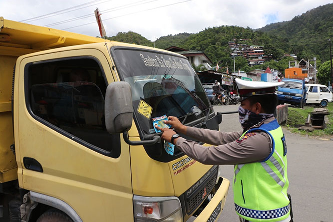 “Untuk stiker yang sudah disiapkan sebanyak 1.000 stiker, upayakan rekan-rekan ketika melaksanakan tugas di lapangan jangan sampai kita membuat macet arus lalu lintas, karena itu dapat mengganggu pengguna jalan raya lainnya,” tutur AKBP Lukas Sapusepa.