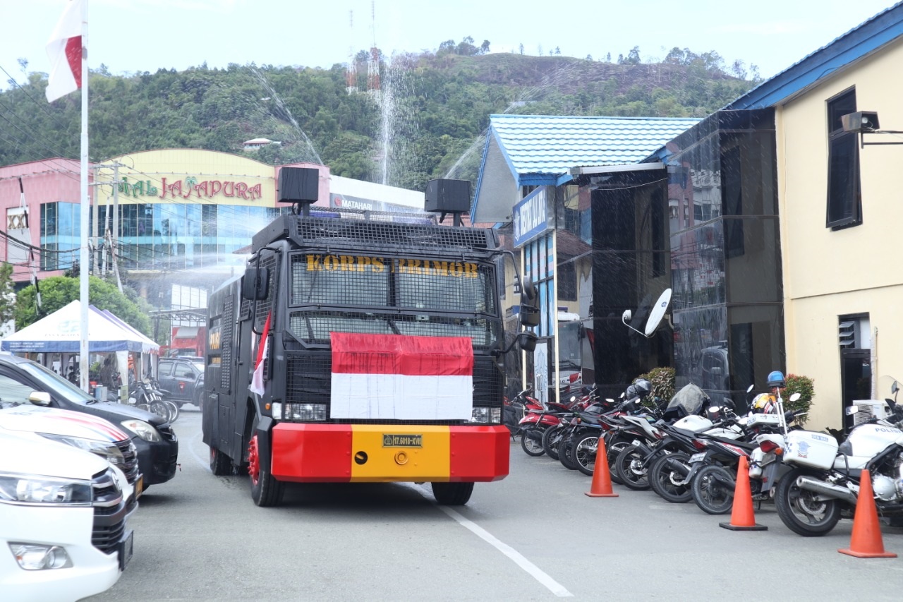 Penyemprotan dilakukan dengan menggunakan Mobil AWC dan mobil pemadam kebakaran. Tim yang pertama dipimpin oleh AKBP Daniel P., S.I.K. melaksanakan penyemprotan di Wilayah Distrik Jayapura utara, antara lain DOK IX (Kios/Toko dan Rumah Warga), Base-G (Kios/Toko dan rumah warga), Halte depan Gor Cenderawasih, Pelabuhan Porasko (Toko/Kios) dan Taman imbi.