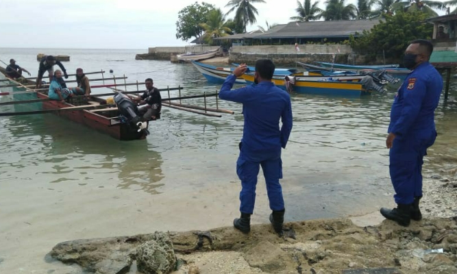 Anggota Sat Pol Air Biak Numfor saat menghimbau warga yang baru datang dengan perahu untuk kembali ke kampungnya (Lisa)