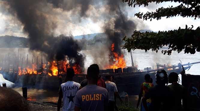 Jayapura, Nokenlive.com – Sebuah kapal KLM Arham Putra 01 pengangkut Bahan Bakar Minyak (BBM) milik Jamaluddin terbakar di Pelabuhan Burmeso, Kabupaten Mamberamo Raya, Kamis, (21/05) sekitar pukul 11.00 Wit.