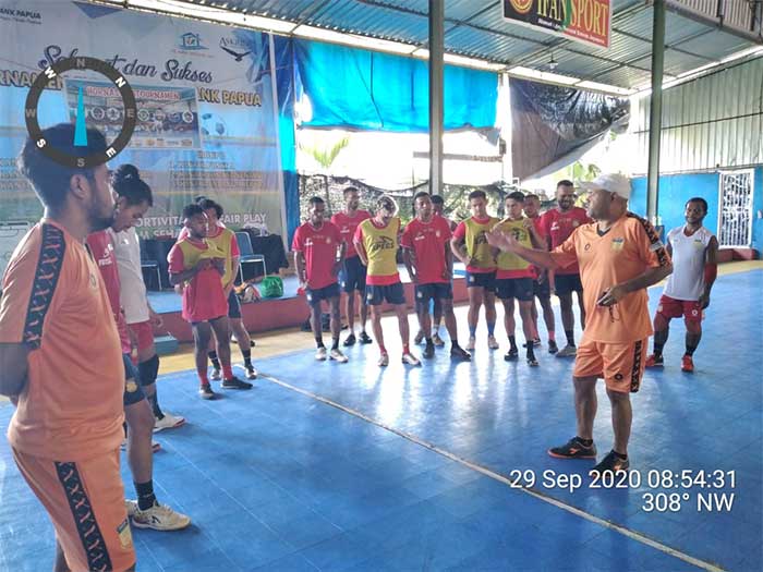 ” Yang perlu diketahui oleh setiap pemain futsal adalah, cara pasing dan kontrol bola tapi juga sistem bertahan dan sistem menyerang ketika dalam sebuah pertandingan,” ujar Daud Arim. Selasa (29/9/2020) di Lapangan Futsal Polimak. kota Jayapura