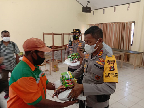penyerahan sembako dari Polres Merauke, kepada Para Petugas Kebersihan Kota Merauke.