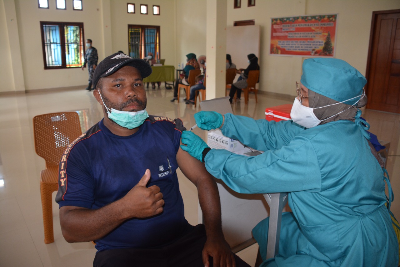 Kegiatan Vaksinasi tersebut dilaksanakan dengan menurunkan tim dari Dinas Kesehatan Lantamal X Jayapura yang terdiri dari Tim Vaksinator yang berjumlah 7 orang dan dipimpin langsung oleh Kadiskes Lantamal X, Mayor Laut (K) drg. Agus Pudianto, Sp. Pros.