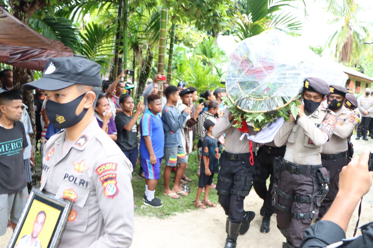 Kapolda Jambi Irjen Pol Albertus Rachmad Wibowo didampingi Karo SDM Kombes Pol Anton Soerjawo, Kepala SPN Jambi Kombes Pol Noveriko Alfred Siregar turut langsung mengantar jenazah Denis ke papua.