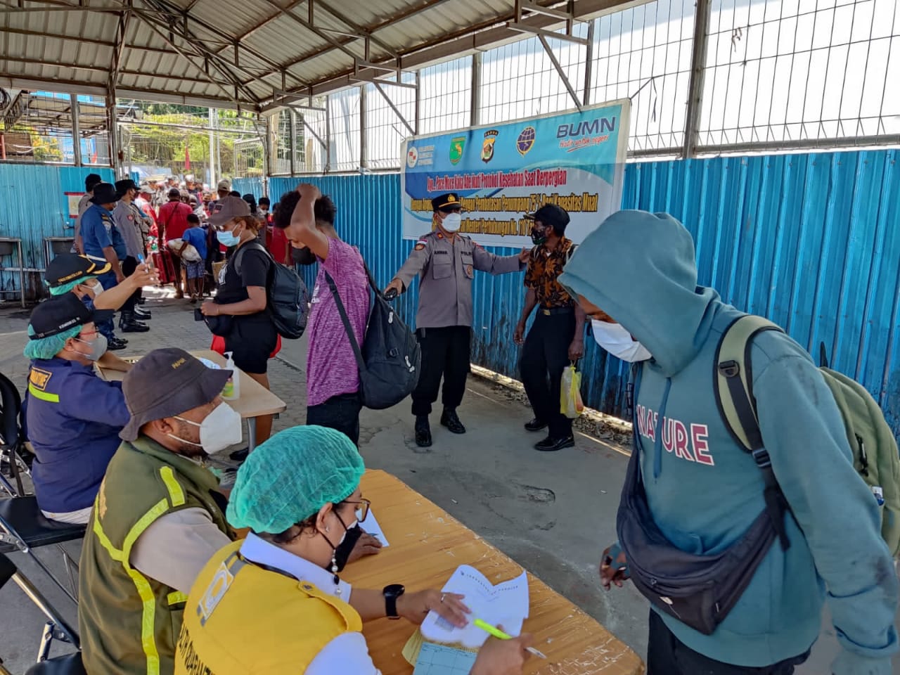 “Hari ini kita kembali melaksanakan pengawasan penerapan protokol kesehatan sekaligus melakukan pemeriksaan bagi para penumpang yang turun dari KM. Sinabung di pelabuhan laut Jayapura. Dimana penumpang kami arahkan menuju meja pemeriksaan dokumen perjalanan bagi penumpang lokal atau dari dalam Papua sedangkan penumpang dari luar Papua dilakukan pemeriksaan Rapid Antigen,” ungkapnya.