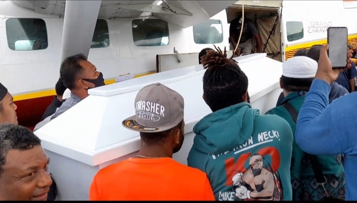 Jenazah Almarhum Dimasukan Ke Dalam Pesawat Untuk Diterbangkan Ke Jayapura