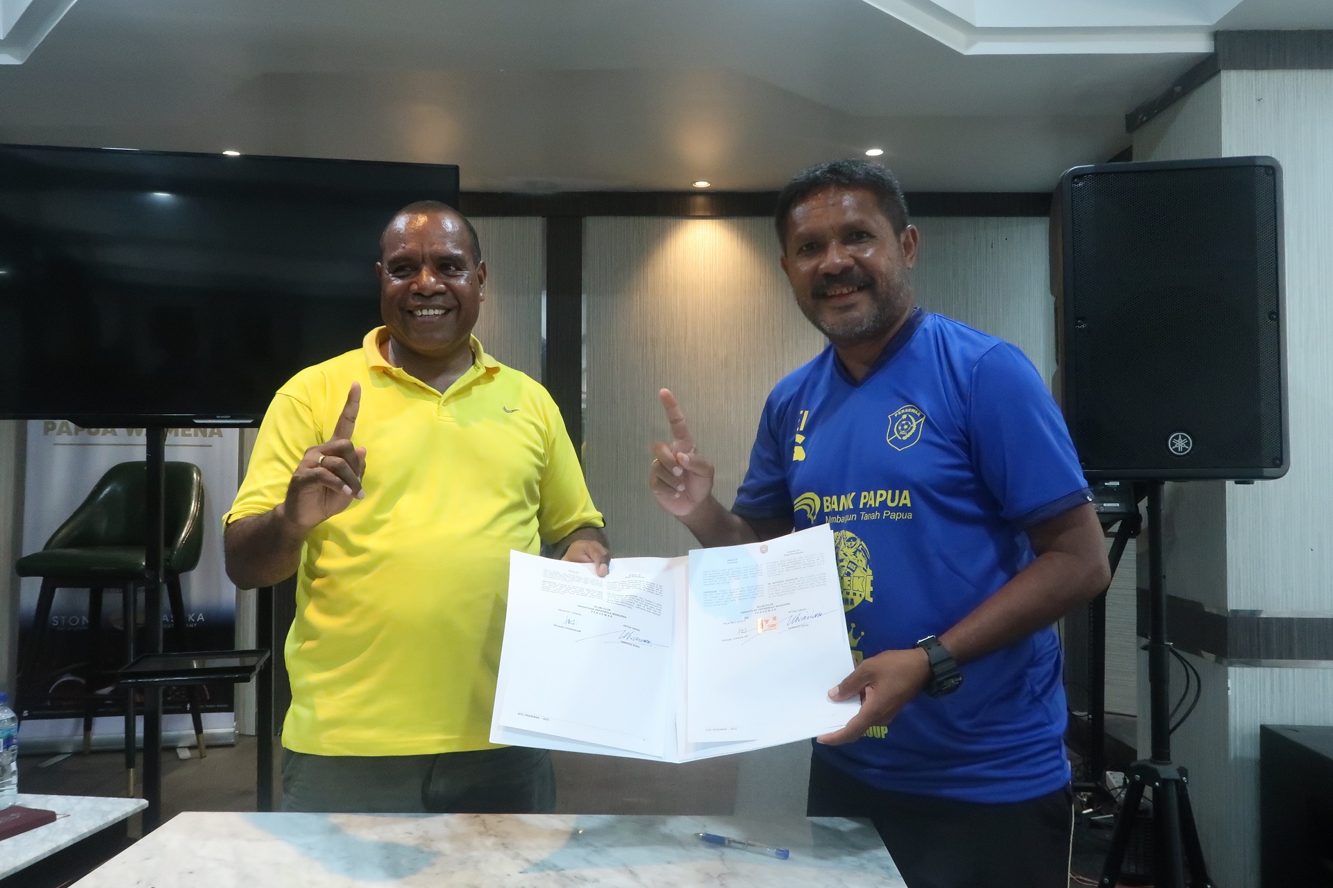 JAYAPURA-Ketua Umum Persewar Waropen, Yermias Bisai, telah menyepakati kontrak dari jajaran tim Persewar Waropen. Lima orang Pelatih, dan 32 orang pemain. Pemain Mutiara Bakau kali ini dipenuhi wajah baru, dan mayoritas pemain muda, dan putra-putra asli Papua.