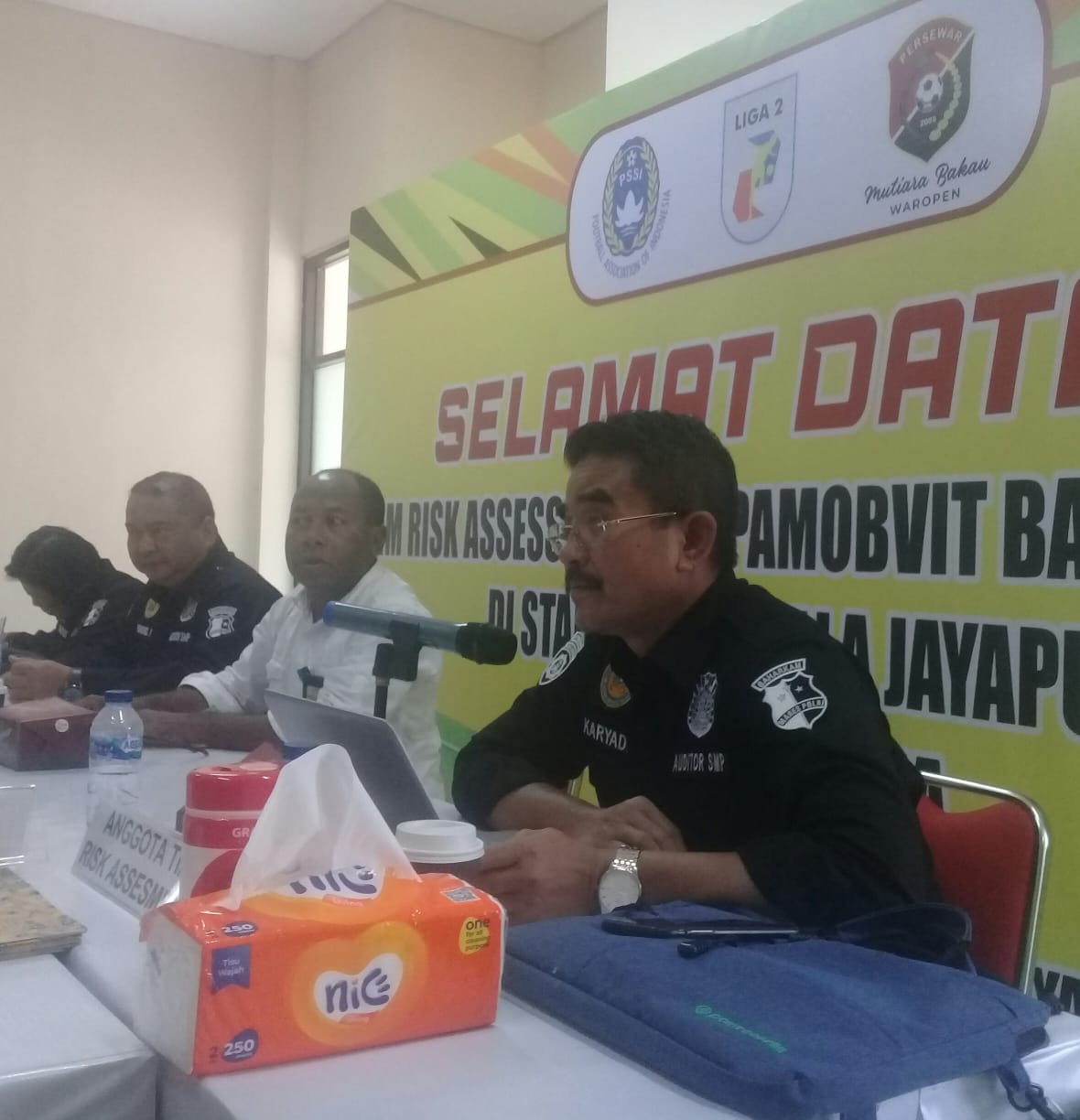 Ketua tim penilaian resiko pertandingan Ditpamobvit Barhankam Mabes Polri, Kombes Pol. Purwoko Yudianto menyampaikan, pihaknya ke Papua guna melakukan penilaian resiko saat pelaksanaan pertandingan di stadion Mandala Jayapura.