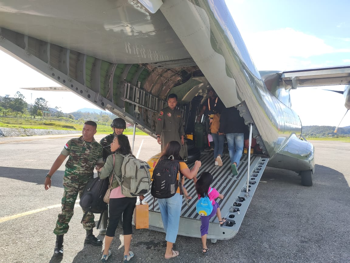Warga mengungsi ke Jayapura menggunakan pesawat milik TNI AU dari Oksbil ke Jayapura, Jumat, (13/01/23).