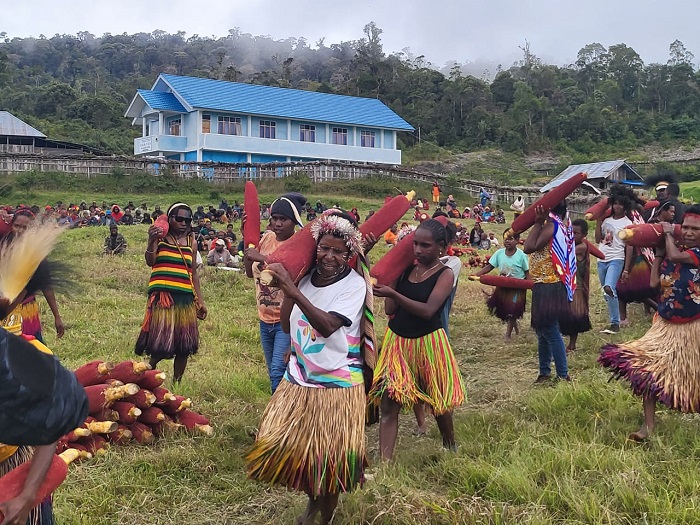 Guna membantu kelancaraan tiga gereja, Kabag Humas dan Informasi Provinsi Papua Pegunungan, Levianus Kogoya menerima 2.600 buah merah