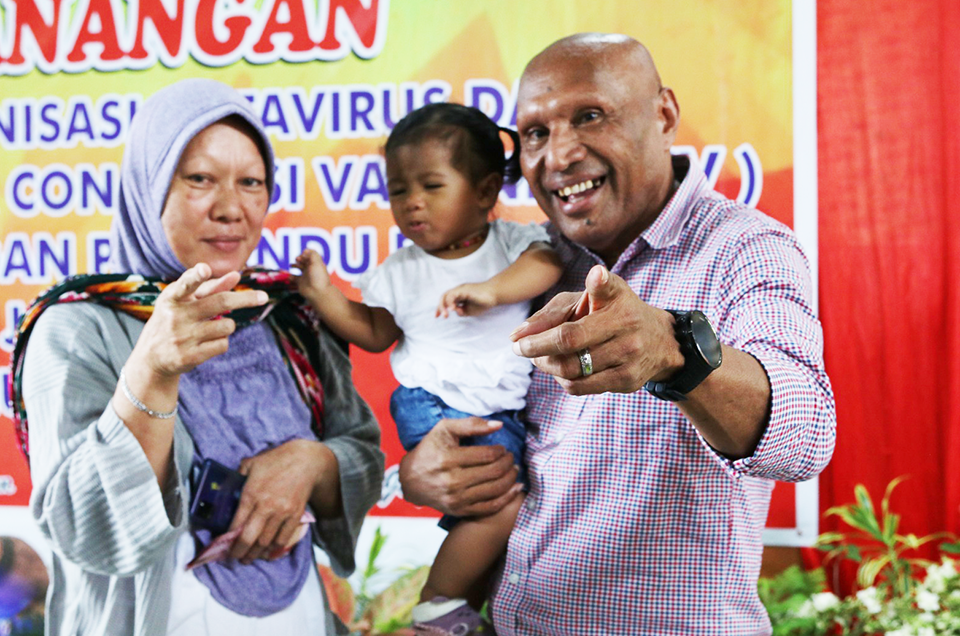 Tenaga Ahli Kementerian Sosial Bidang Rehabiltasi Sosial, Dr. Drs. Benhur Tomi Mano, MM (BTM) melaksanakan imunasi kepada anak dan balita di kota Jayapura.