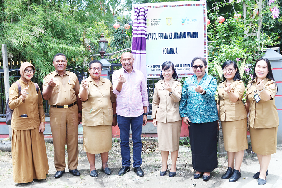 Tenaga Ahli Kementerian Sosial Bidang Rehabiltasi Sosial, Dr. Drs. Benhur Tomi Mano, MM (BTM) saat foto bersama disela sela pencanangan Posyandu Prima Kota Jayapura. Ia mengatakan target pemerintah pusat melalui Presiden RI Joko Widodo adalah menekan angka stunting hingga dibawah 14 persen pada 2024 di seluruh nusantara. (FOTO IST/RED)