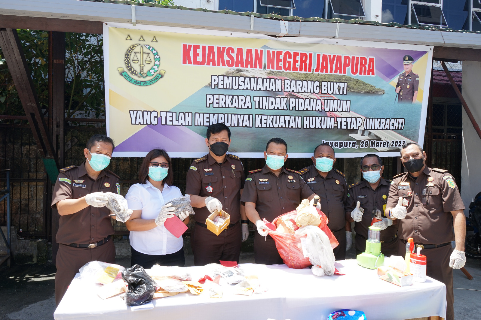Kepala Kejaksaan Negri Jayapura, Alex Sinuraya mengatakan, jajarannya melakukan pemusnahan barang bukti yang bersumber dari 81 perkara yang telah bermuatan hukum tetap.