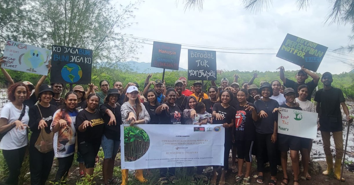 Yayasan Noken Peduli Papua bekerjasama dengan PAM Rayon VI GKI Harapan dan PAM GKI Calvaria Angkasa serta Rumah Bakau Jayapura melaksanakan kegiatan penanaman Mangrove di area Teluk Youtefa pada Jumat 11 Agustus 2023.