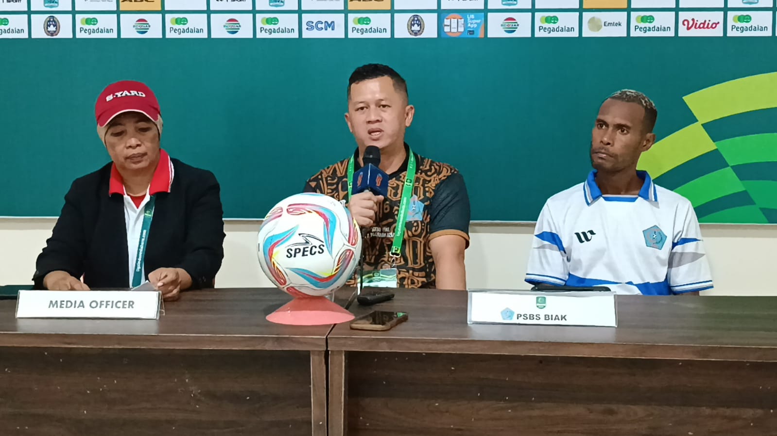 JAYAPURA, Nokenlive.Com – PSBS Biak meraih hasil sempurna pada leg pertama babak final Pegadaian Liga 2 musim 2023/2024. Skuad berjuluk Badai Pasifik menang 3-0 atas Semen Padang FC di Stadion Cenderawasih Biak, Papua, Selasa (5/3/2024).