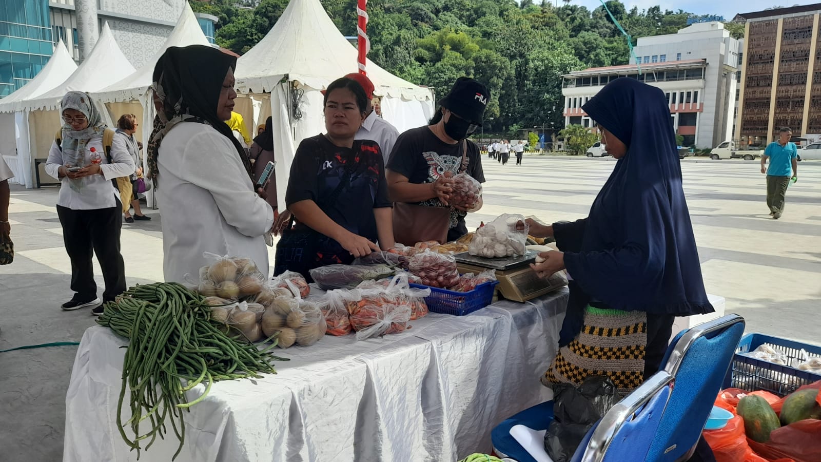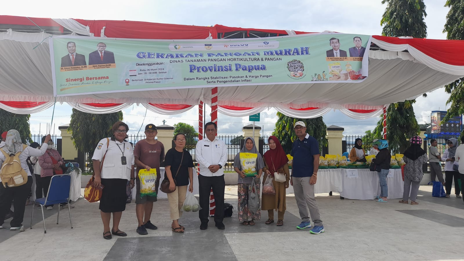 JAYAPURA, Nokenlive.Com – Kegiatan gerakan pasar murah dalam rangka stabilitas harga pangan yang diselenggarakan Pemerintah Provinsi Papua melalui Dinas Pertanian Tanaman Pangan dan Holtikultura Provinsi Papua berlangsung di halaman Kantor Gubernur Papua, pada Rabu (6/3/24).