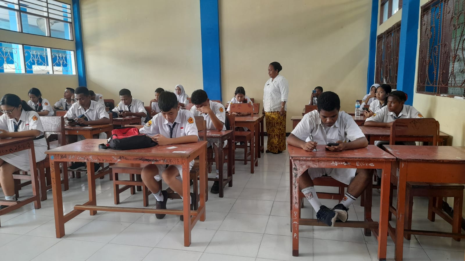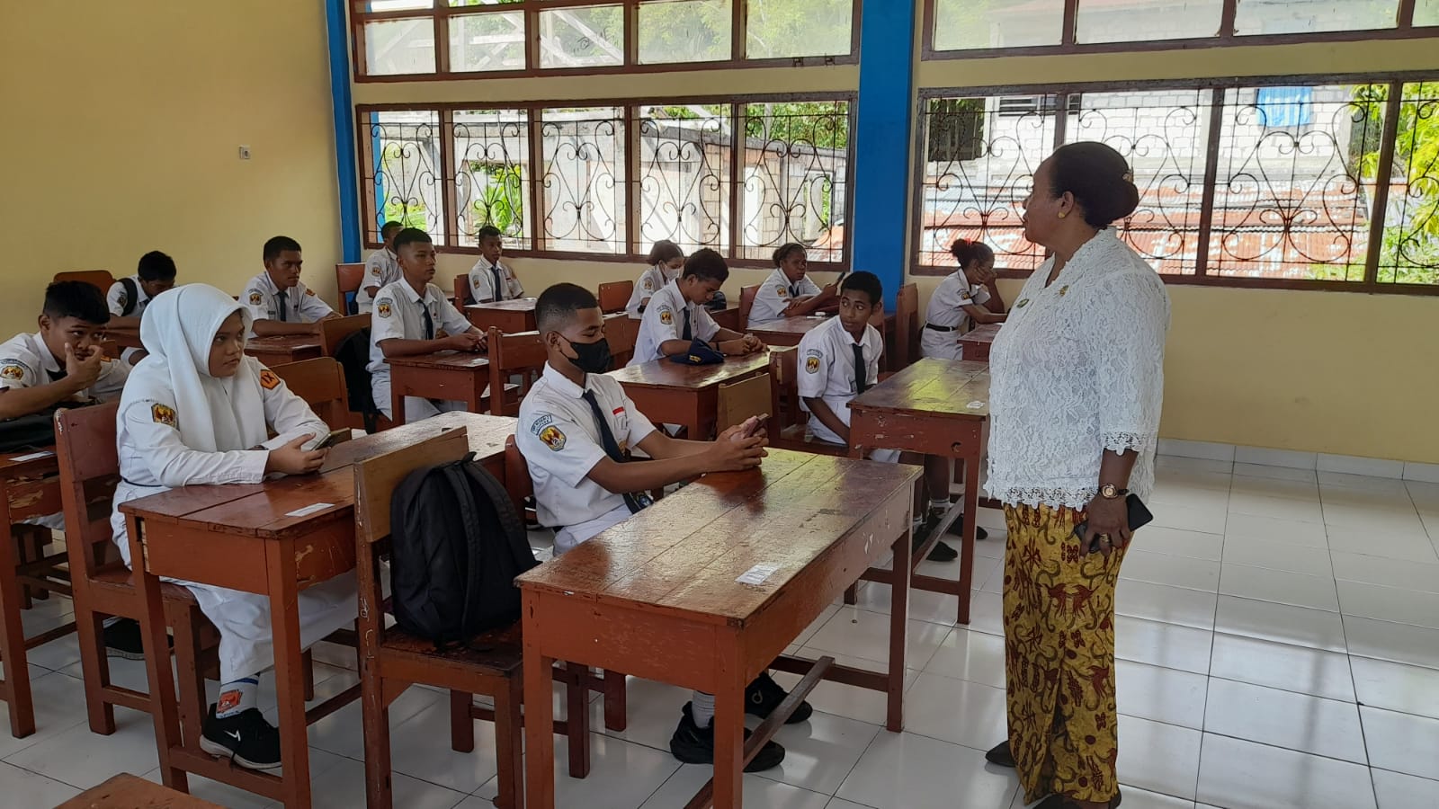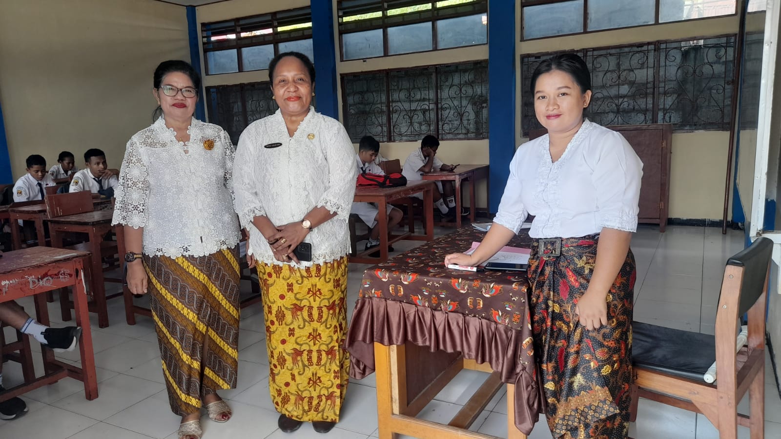 Sambungnya untuk itulah seluruh guru kelas yang mengawasi ujian tryout tahap ke 2 di SMP N 2 Jayapura, menggunakan busana kebaya dan batik dari tiap daerahnya masing-masing.“ Ujarnya.