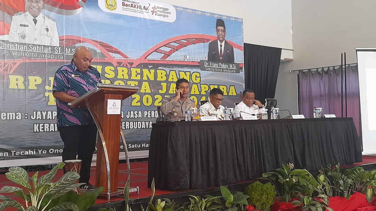 “Musrenbang RPJP Daerah Kota Jayapura Tahun 2025-2045 di Tahun 2024 dengan mengusung tema jayapura sebagai kota perdagangan jasa berbasis ekonomi kerakyatan unggul, berbudaya, maju dan berkelanjutan, “ Ungkapnya.