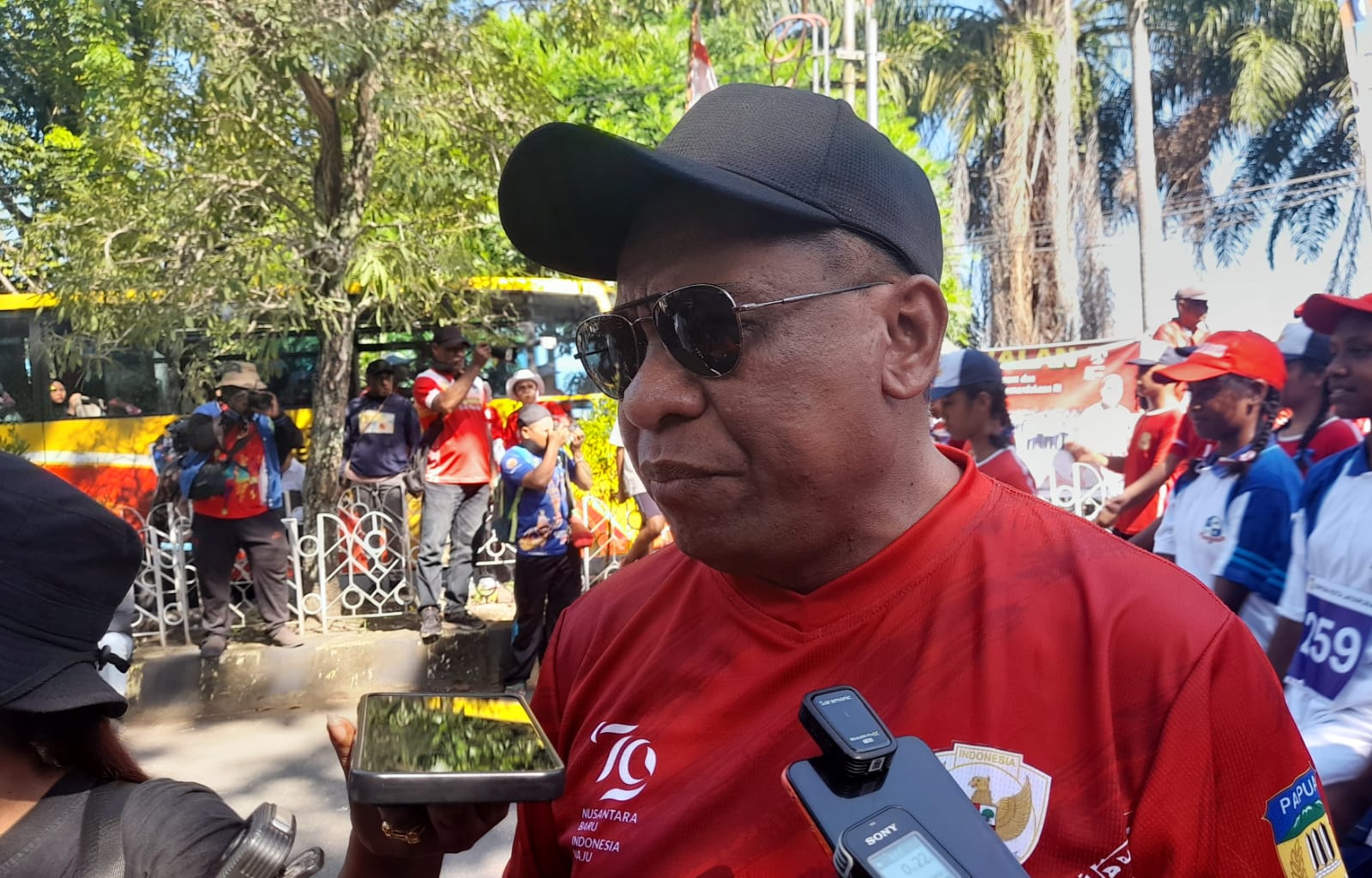 Penjabat Walikota mengajak masyarakat kota Jayapura untuk ikut mensukseskan pesta kemerdekaan republik indonesia yang ke 79 Tahun 2024 melalui memasang umbul2 merah putih dan memasang bendera merah putih di tiap rumahnya masing-masing serta menjaga kebersihan di lingkungannya.“ Imbaunya Sohilait saat dijumpai wartawan nokenlive usai lepas gerak jalan.