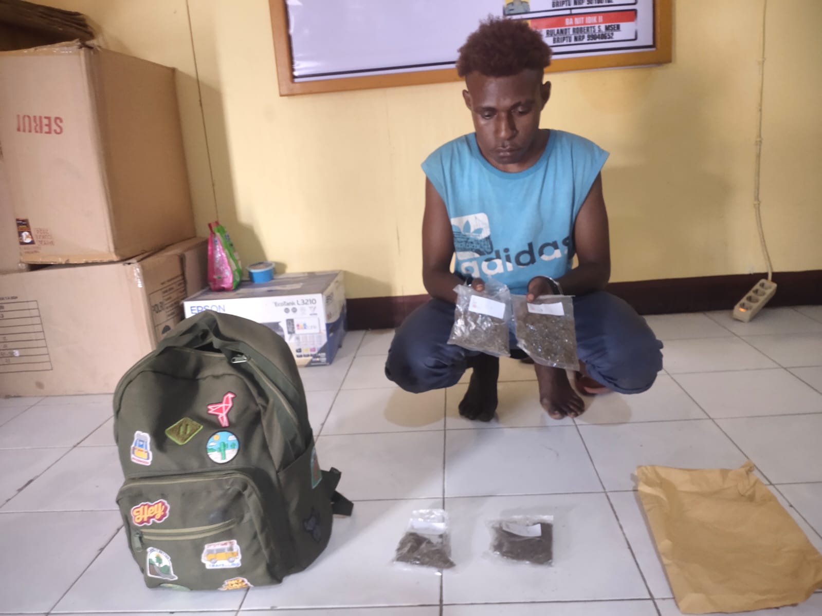 Dan ditempat terpisah Dir Resnarkoba Polda Papua, Kombes Pol. Alfian, S.I.K., M.Si., M.hum., pada saat kapal baru bertolak dari pelabuhan Jayapura menuju serui kemudian petugas mendapati pemuda/tersangka Inisal ST, di sekoci bagian belakang sedang mengisap sebatang lintingan yang diduga Narkotika Jenis Ganja, dengan cepat petugas kapal menggeledah tas gendong berwarna hijau dan di temukan 4 (empat) bungkus plastik bening berukuran sedang.