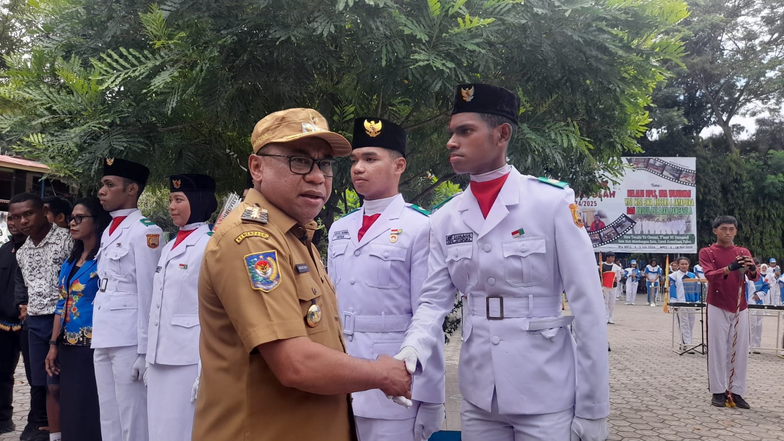 Turut Hadir dan saksikan yakni Kabid SD Disdik Kota Jayapura, Kadis Pendidikan Kota Jayapura, Ka Humas Pemkot Jayapura, para dewan guru dan staf tata usaha juga orangtua murid serta seluruh siswa.