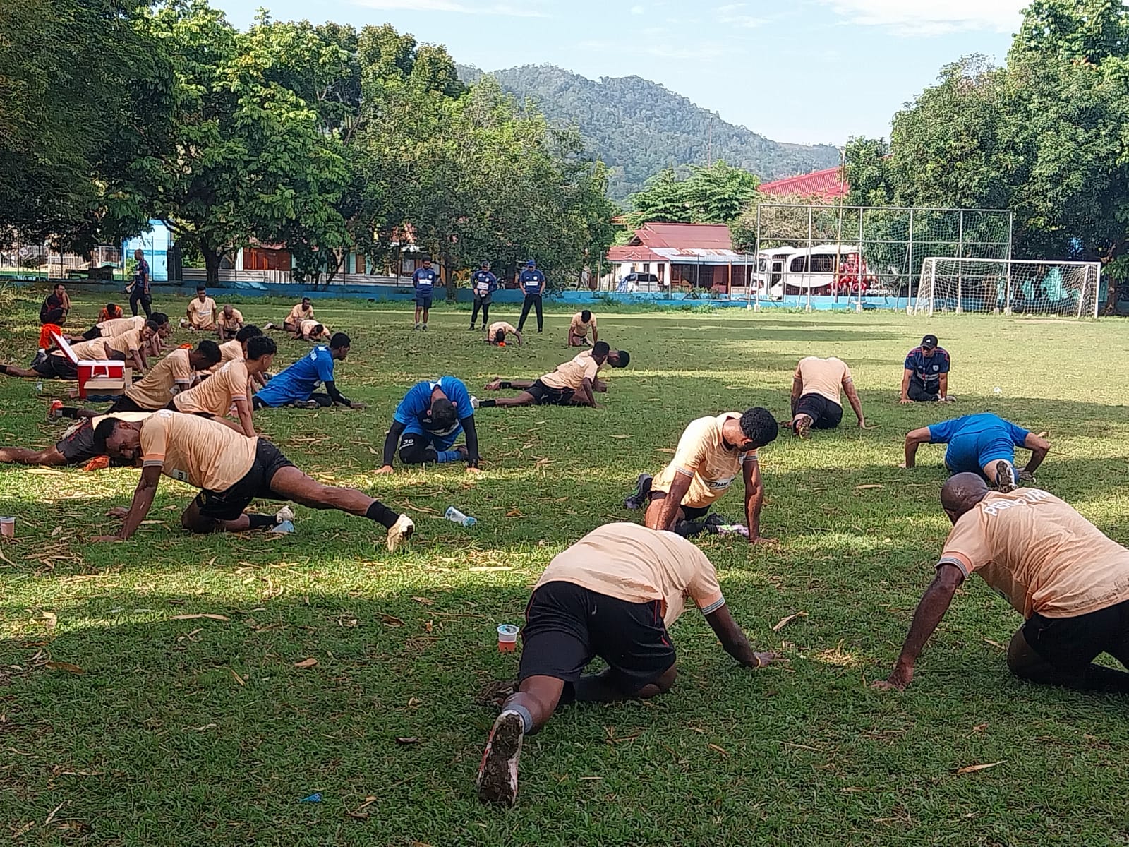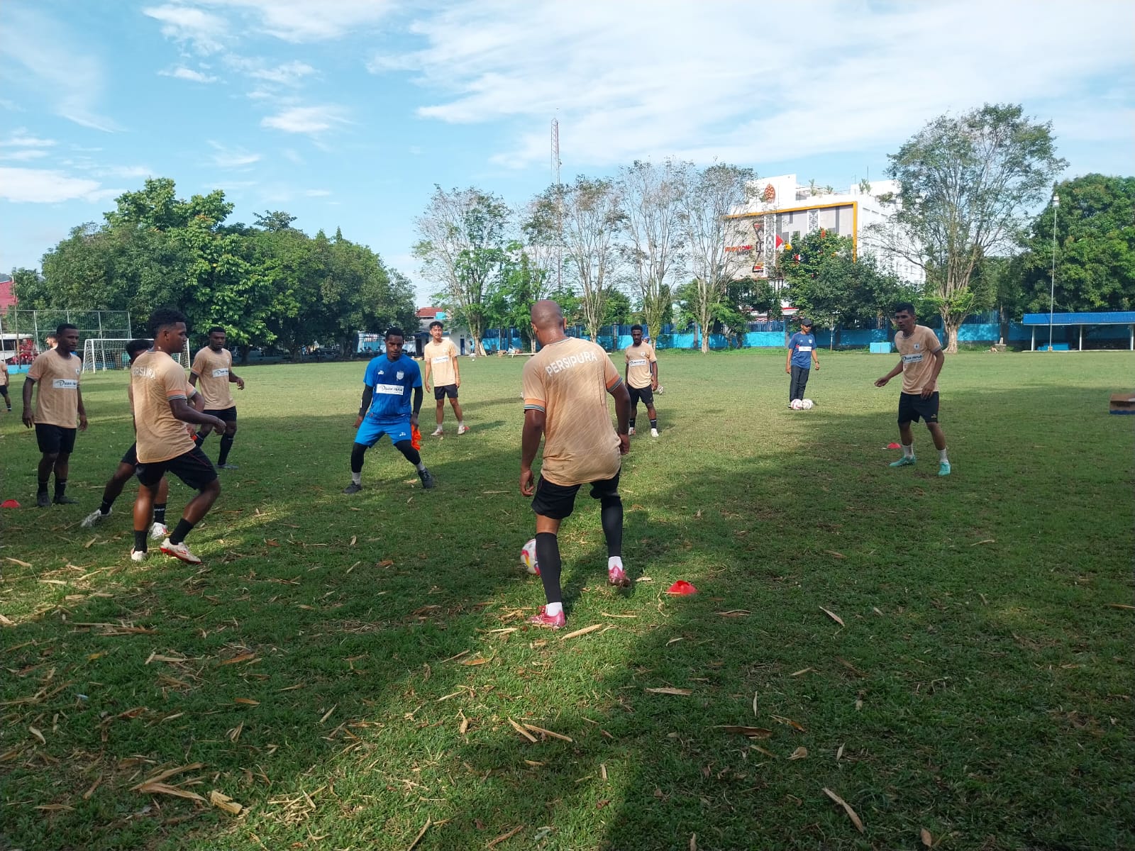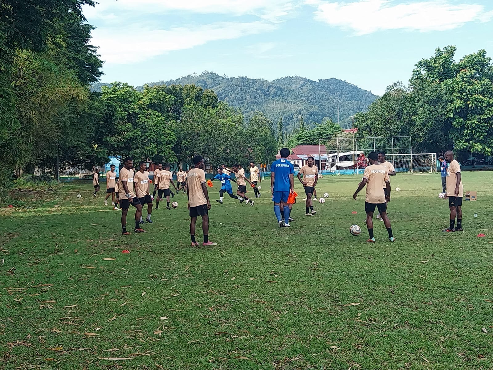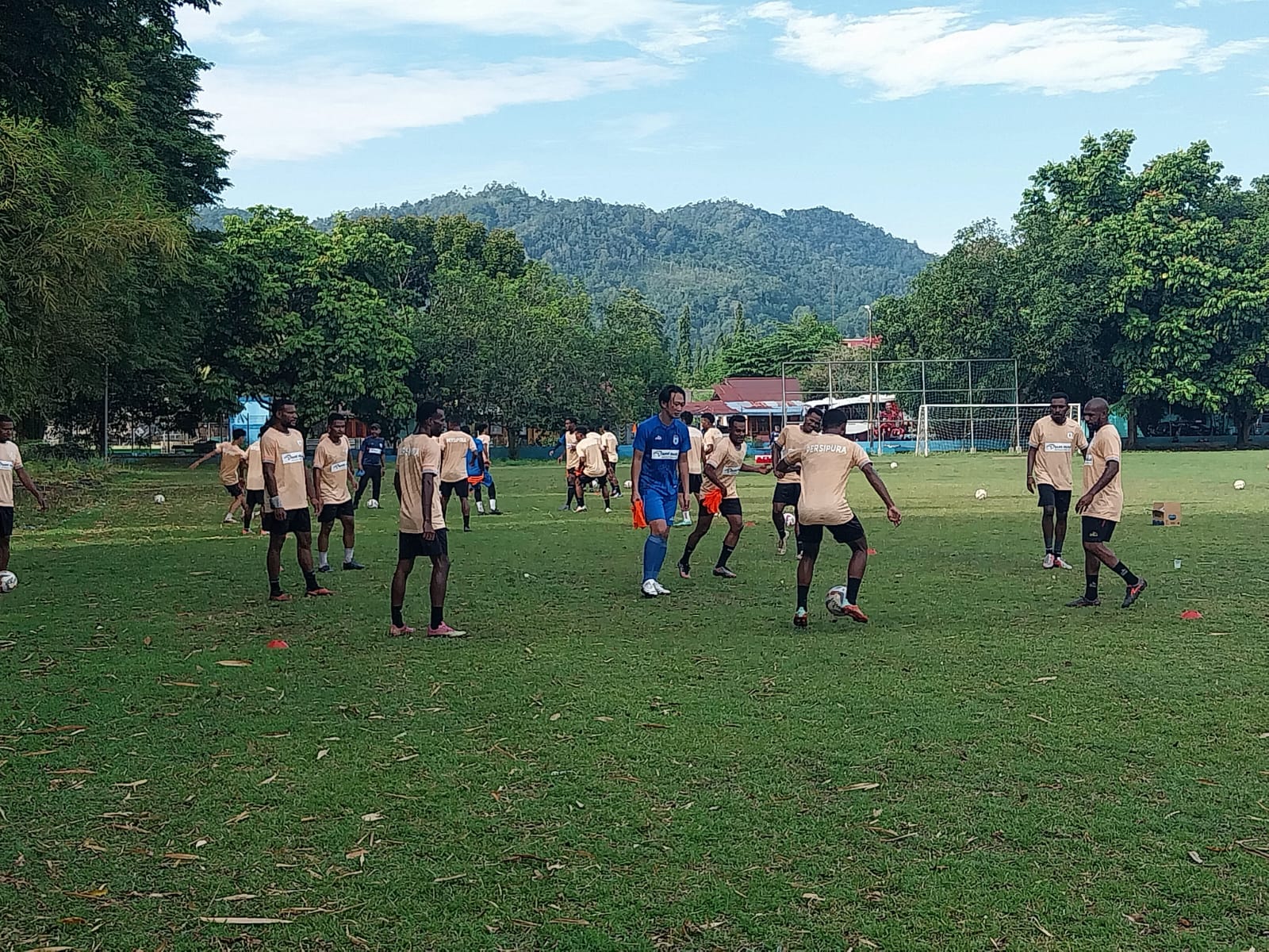 Latihan Bersama Berlangsung Cerah Dibawa Sinar Matahari Pagi di Lapangan PLTD Waena dan semua pemain ikut ambil bagian bersama. Termasuk The Legend Boaz Solossa ikut membangun semangat latihan bersama rekan – rekan pemain lainnya.