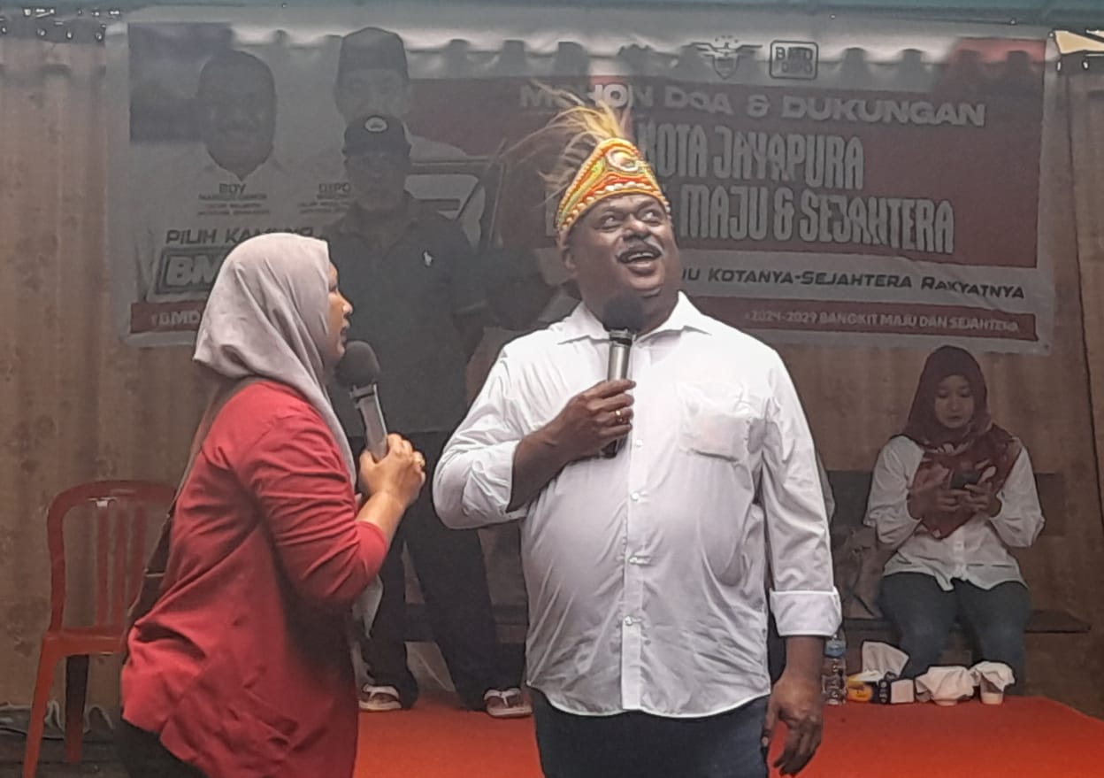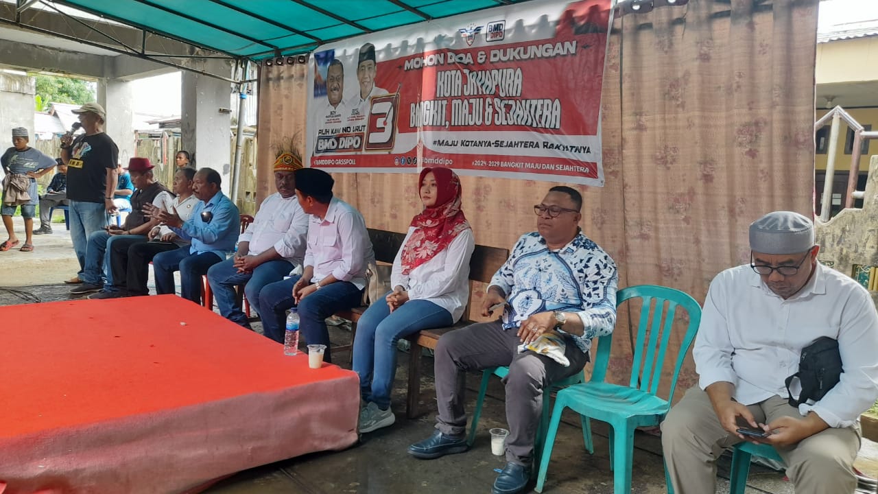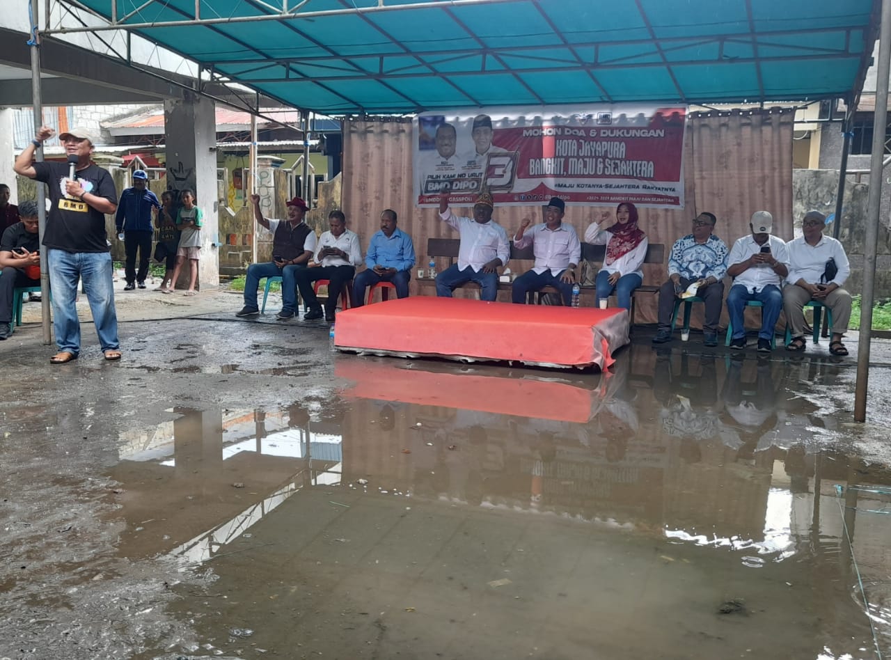 Jayapura, Nokenlive.Com – Paslon nomor urut 3 BMD DIPO melakukan kampanye dengan blusukan dan tatap muka bersama warga di komplek rusunawa pasar inpres dok 9 Tanjungria Jayapura Utara Kota Jayapura, pada Rabu, (23/10/24).