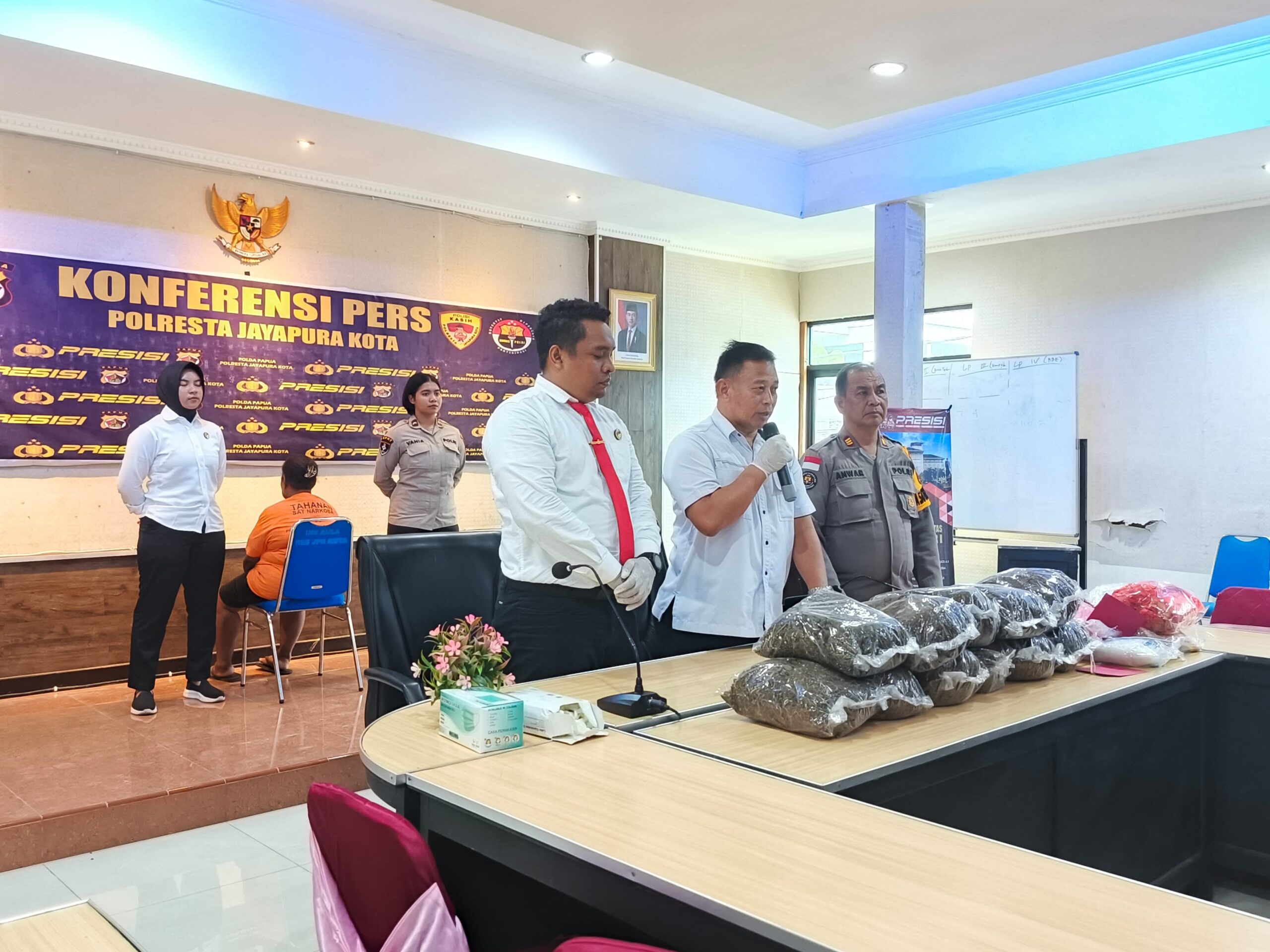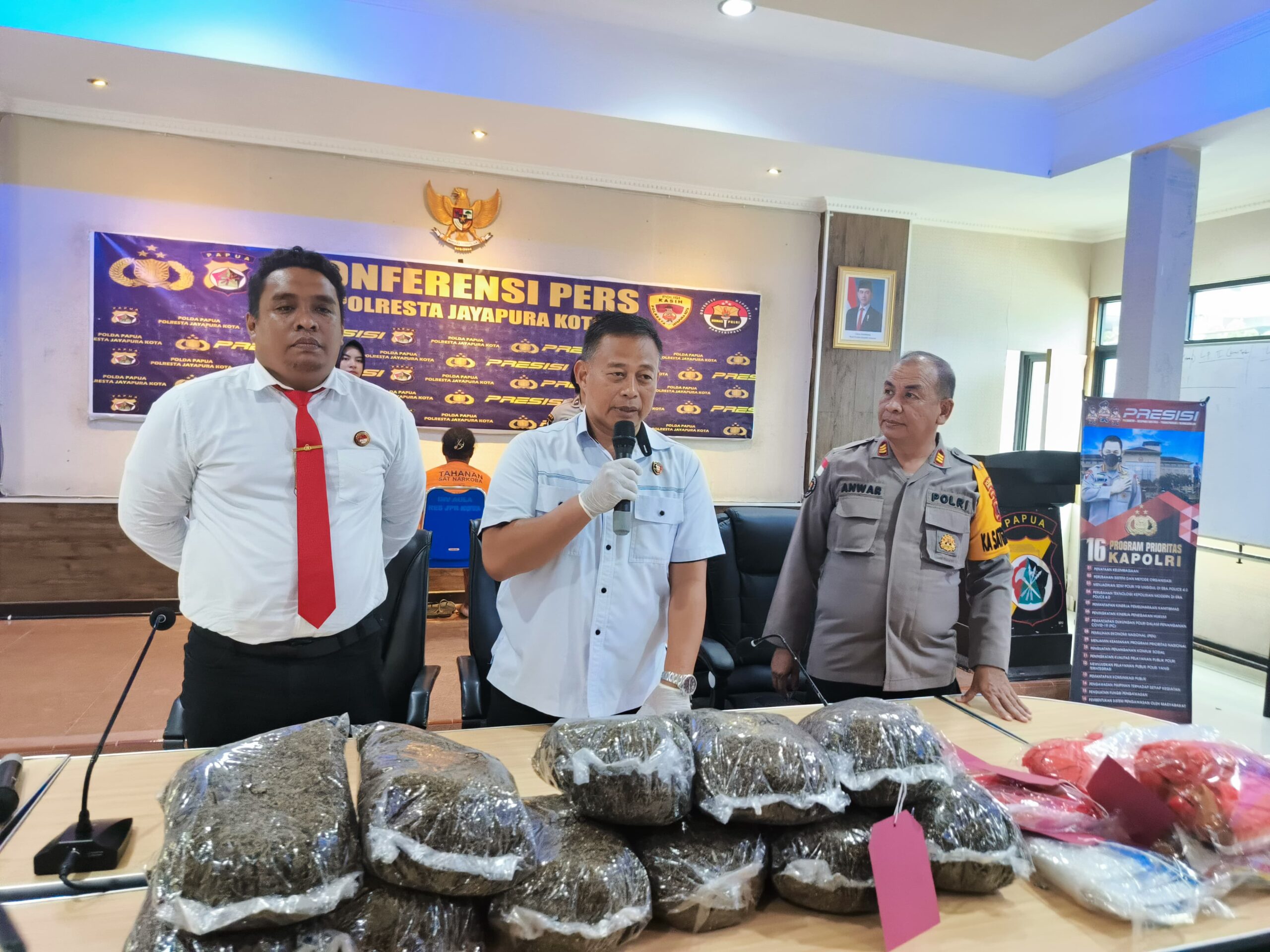 Hal tersebut diungkapkannya saat menggelar jumpa pers didampingi Kasat Resnarkoba Polresta Jayapura Kota AKP Febry V. Pardede, S.T.K., S.I.K dan Kasi Humas AKP Muh. Anwar di Mapolresta Jayapura Kota, Senin (28/10) siang.