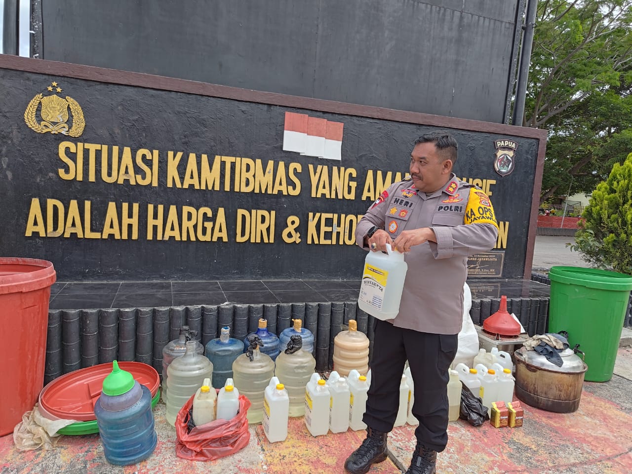 Jayapura, Nokenlive.Com – Kepolisian Resor Jayawijaya Polda Papua berhasil mengamankan ribuan liter minuman keras lokal dari tempat produksi di Jalan Sosial dan Jalan Pattimura Potikelek Wamena.