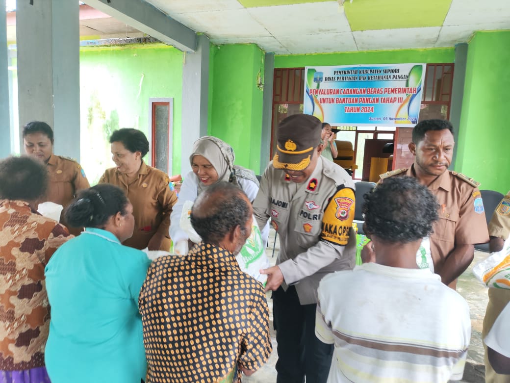 Jayapura, Nokenlive.Com – Kepolisian Resor Supiori Polda Papua ikut melaksanakan penyaluran cadangan beras bantuan Pemerintah untuk bantuan pangan tahap II tahun 2024 oleh Dinas Pertanian dan Ketahanan pangan Kabupaten Supiori.