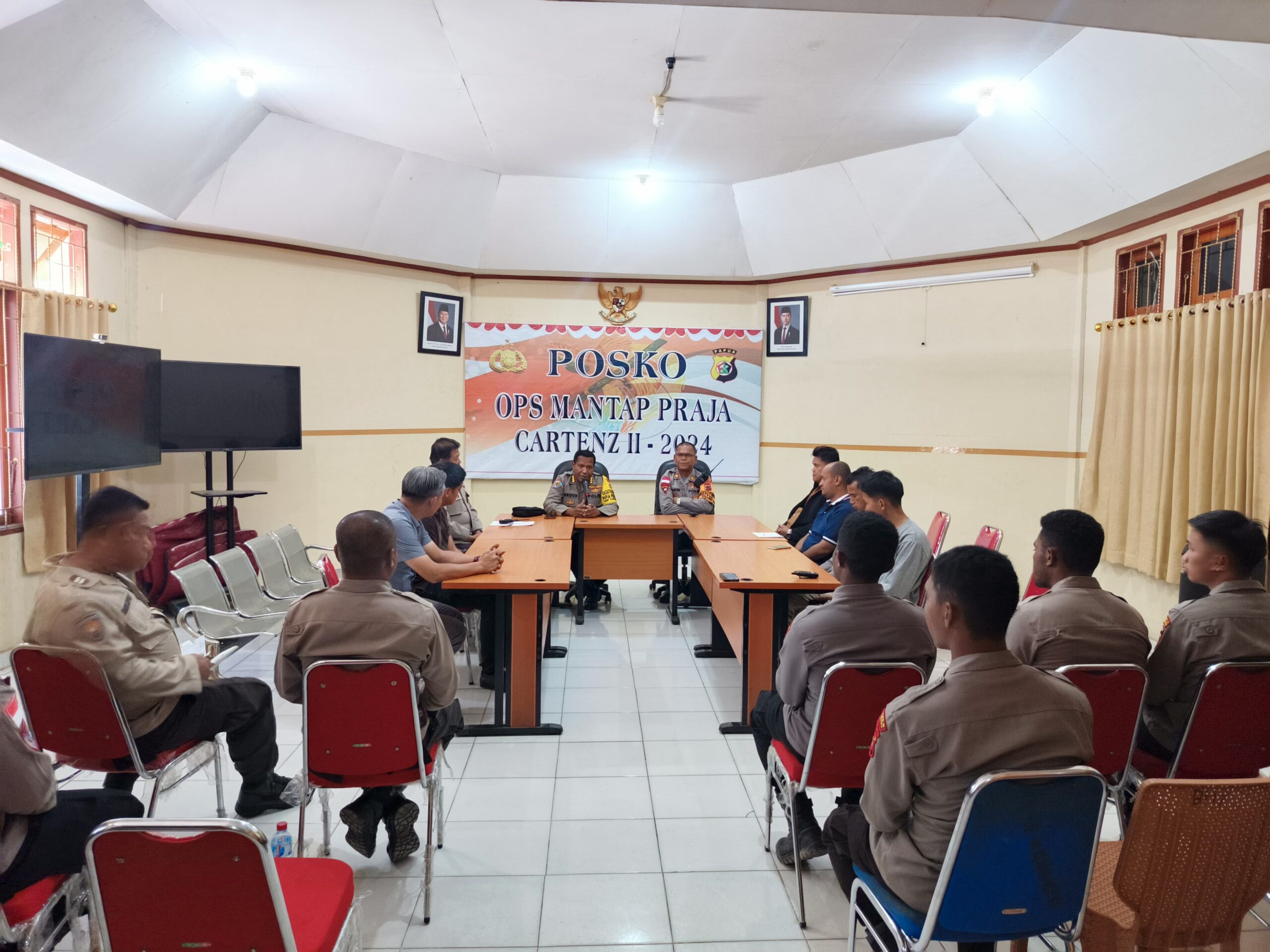 Jayapura, Nokenlive.Com – Bertempat di aula Polres Tolikara, telah berlangsung pertemuan antara LO Polda Papua Pegunungan Kombespol Andi Yoseph Enock, S.I.K bersama para PJU Polres dan anggota dalam rangka menciptakan situasi dan kondisi Kamtibmas Pilkada 2024 Di wilayah Kabupaten Tolikara berjalan dengan aman kondusif, pada Rabu, (06/11/2024).