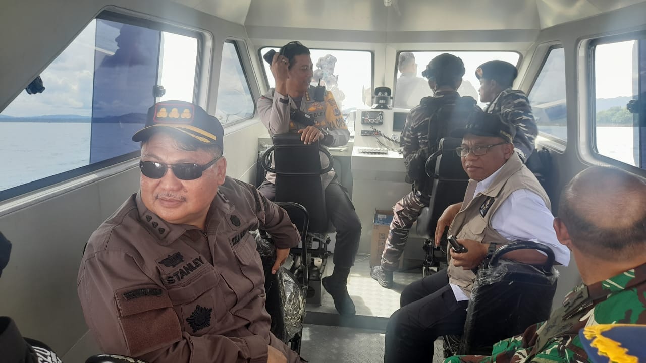 Rombongan penjabat walikota ke kampung enggros menggunakan kapal patroli milik satuan patroli lantamal X Jayapura.