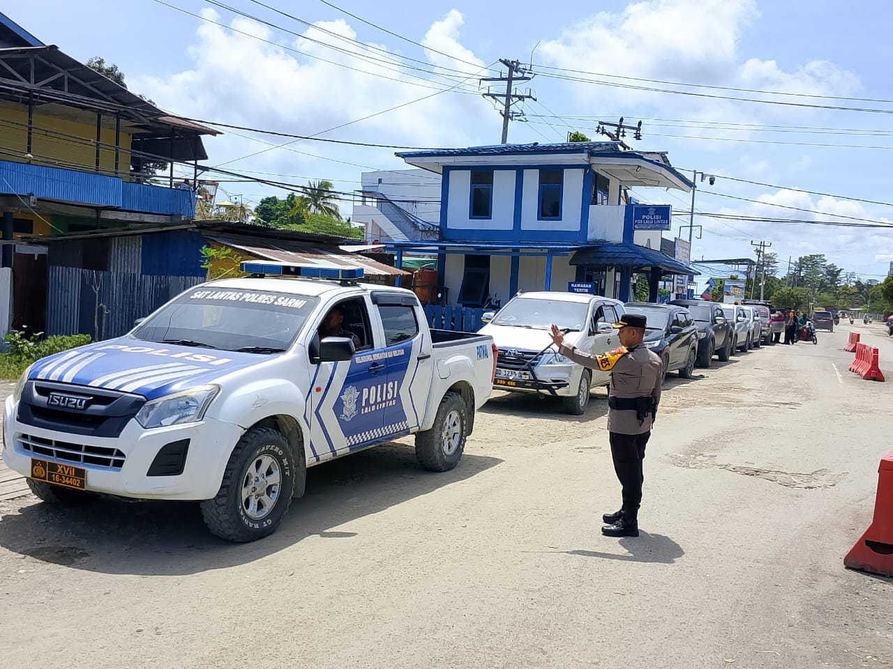 Kapolres Sarmi, Kompol Suparmin, S.IP., M.H., menyampaikan bahwa Pengawalan ini dilakukan oleh personel Sat Lantas, personil gabungan TNI-Polri bersama dengan petugas KPU Kabupaten Sarmi dan Komisioner KPU Kabupaten Sarmi.