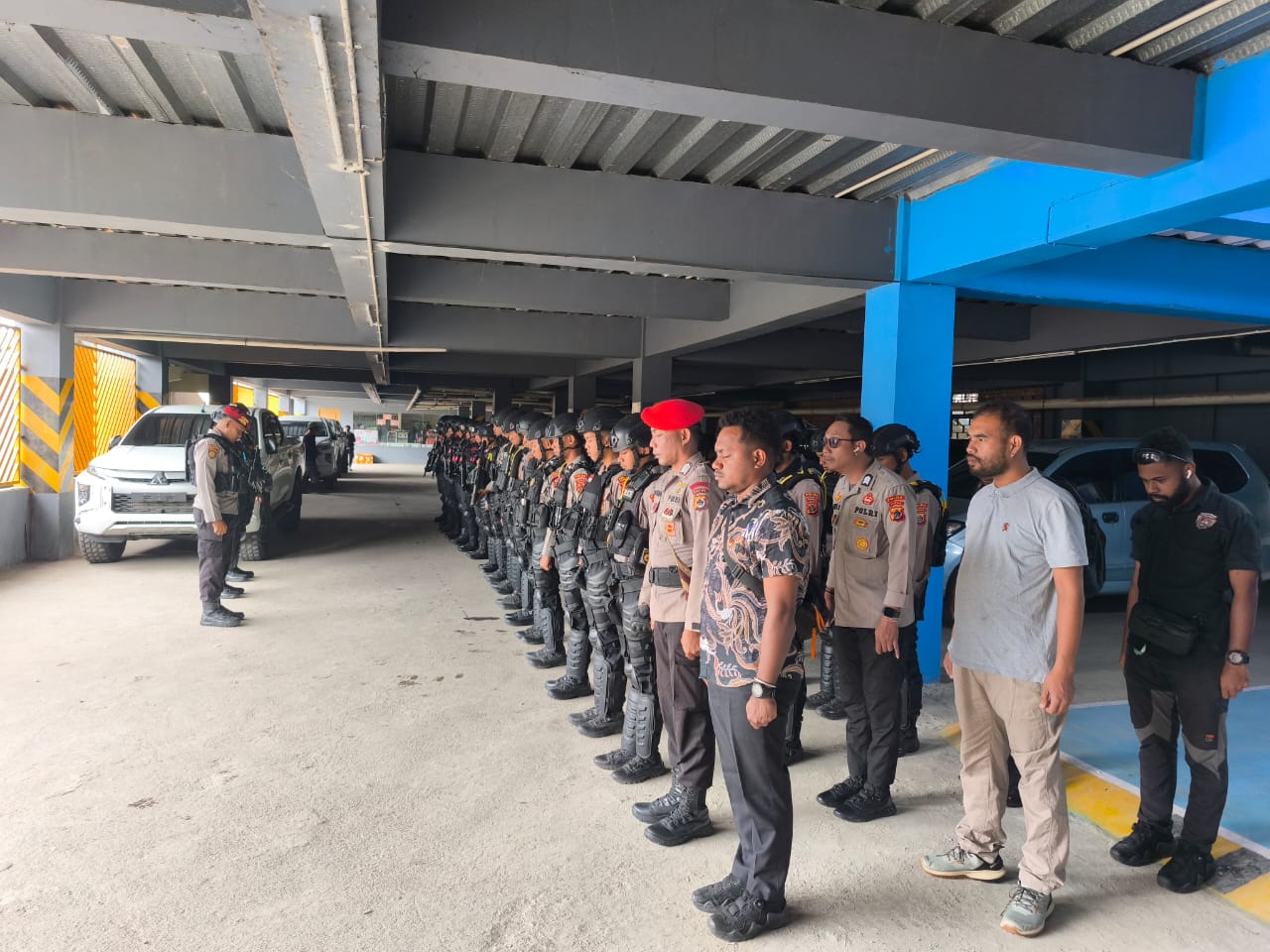 Seluruh personel difokuskan untuk mengamankan di sekitar area acara rapat rekapitulasi yang berlangsung di Baliem Pilamo Hotel, Wamena, Minggu (8/12/2024).