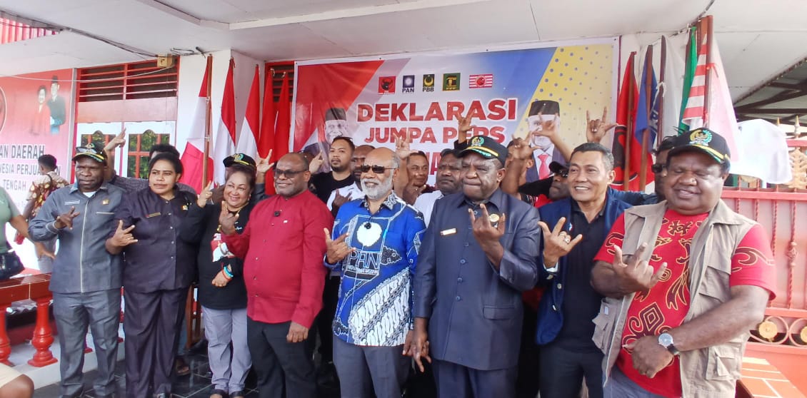Meki Nawipa dan Deinas Geley di usung 5 partai politik yaitu PDIP, PAN, PPP, PBB dan PKN yang tergabung dalam koalisi Papua Tengah Terang.(Lisa)