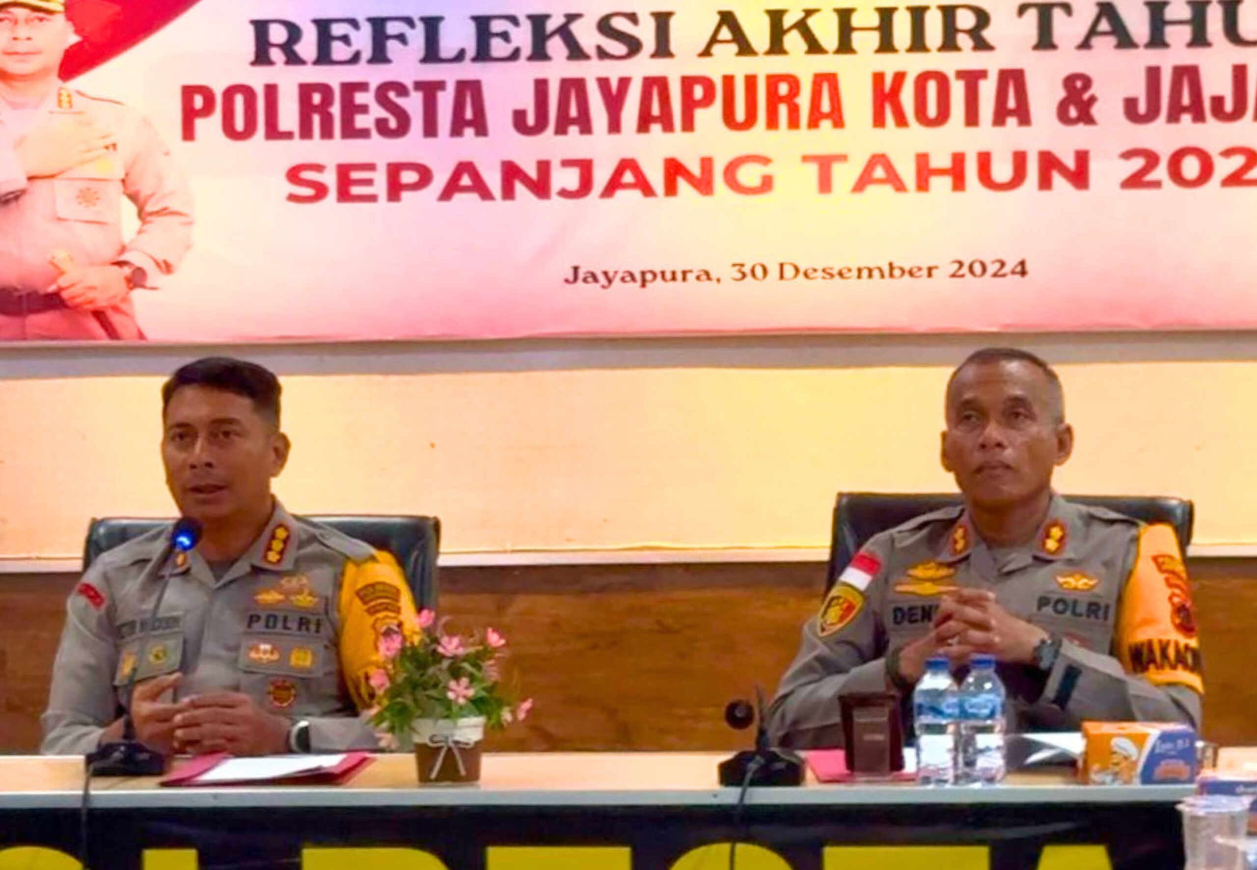 Hal itu diungkapkanya dengan didampingi Wakpolresta Jayapura Kota AKBP Deni Herdiana, S.E., S.H., M.M., M.H saat menggelar Refleksi Akhir Tahun 2023 bersama awak media bertempat di Aula Mapolresta Jayapura Kota dan dihadiri juga oleh para Pejabat Utama dan Kapolsek jajaran, Senin (30/12) pagi.