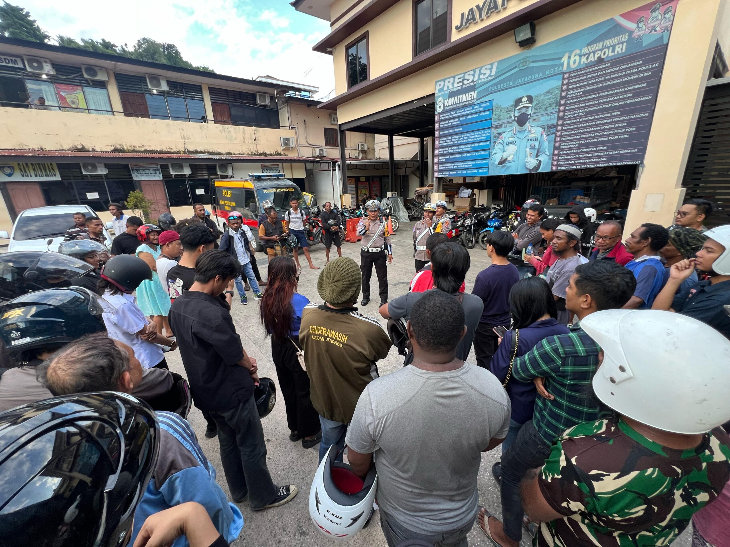 Jayapura Nokenlive.com- Satuan Lalu Lintas Polresta Jayapura Kota lakukan Operasi Keselamatan Cartenz-2025 didepan Mapolresta sekitar pukul 15.30 WIT yang dipimpin langsung Kasat Lantas Polresta Jayapura AKP Moh. Akbar, S.Sos., M.H didampingi Kanit Regident Ipda Fanny Krebru, S.H., M.H dan Kanit Turjawali Ipda Gunther Wolfgang M bersama personel lainya, Selasa (18/2) Sore.