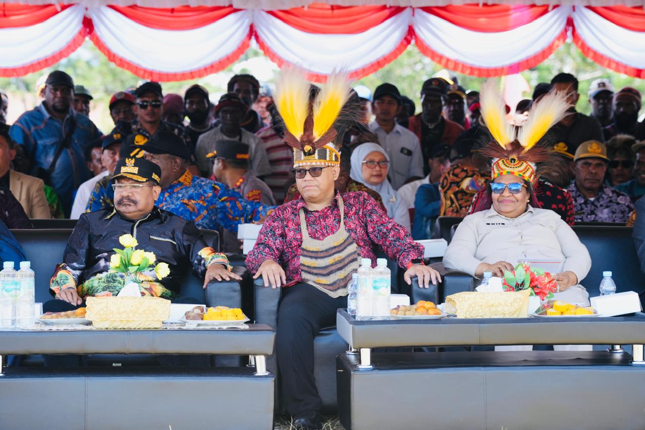 Wamena, Nokenlive.com – Gubernur Papua Pegunungan, John Tabo, memastikan pemindahan lokasi pembangunan kantor pemerintahan dari Wouma-Walesi ke Gunung Susu dalam pertemuan resmi yang digelar bersama Wakil Menteri Dalam Negeri, Ribka Haluk, serta rombongan Komisi II DPR RI. Acara ini turut dihadiri oleh DPRP, MRP, Forkopimda, dan para Bupati dari delapan kabupaten di Papua Pegunungan.