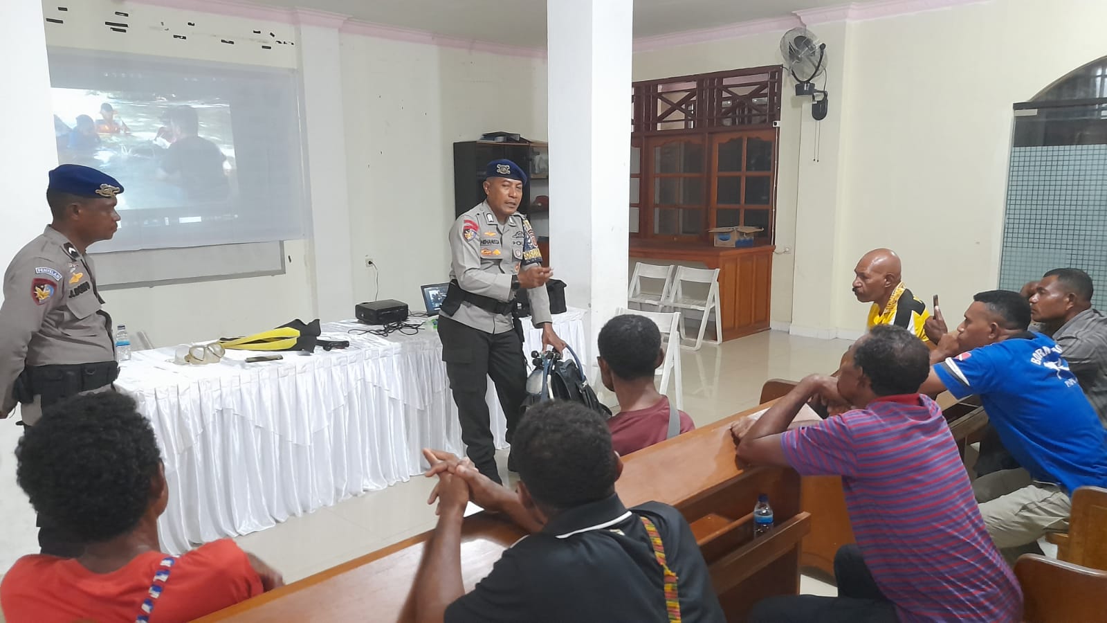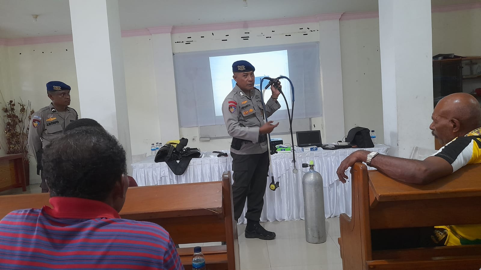 Kegiatan pelatihan tentang selam ini, bekerjasama dengan Polair Polda Papua sebagai narasumber yang berlangsung di gedung gereja eden tanjungria pada jumat sore, (16/5/25).
