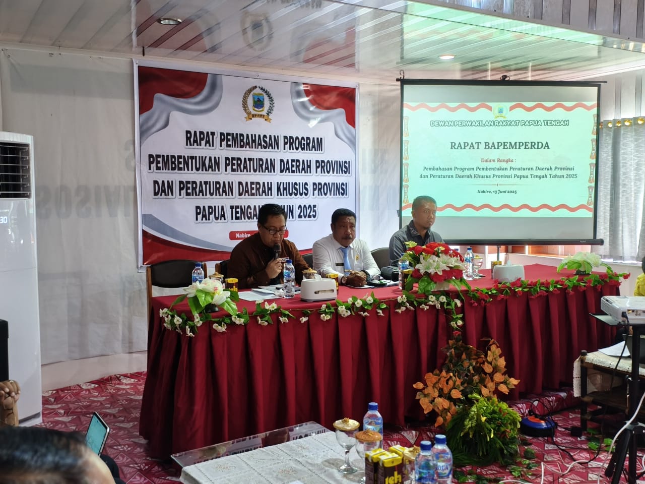 Nabire, Nokenlive.Com – Pj. Sekda Provinsi Papua Tengah, dr.Silwanus Sumule, menghadiri Rapat Pembahasan Pembentukan Program Peraturan Daerah Provinsi dan Peraturan Daerah Khusus Papua Tengah, bertempat di Aula Hotel JDF, Nabire, Jumat , 13 Juni 2025.