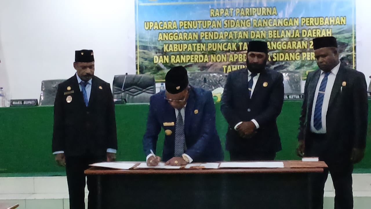 Sementara itu, Bupati Kabupaten Puncak Elvis Tabuni dalam pidatonya menyampaikan bahwa perubahan APBD 2025 adalah “layar baru” untuk memperkuat arah pembangunan daerah.