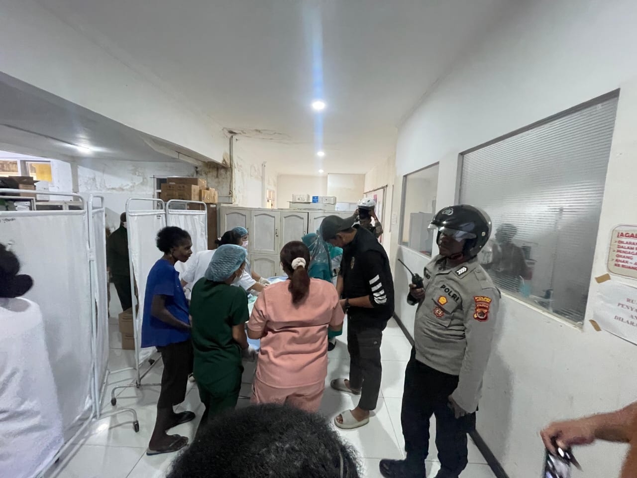 “Hasil pemeriksaan awal, bayi dalam keadaan hidup. Barang-barang yang turut diamankan berupa satu set baju bayi warna hijau, kain bayi warna putih, dan sebuah tas totebag warna biru. Saat ini bayi sudah ditangani pihak RSUD Yowari,” ujar Kasat Reskrim.
